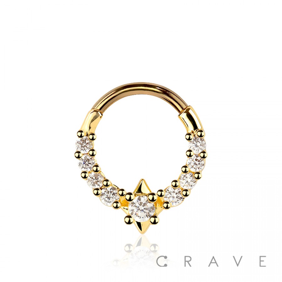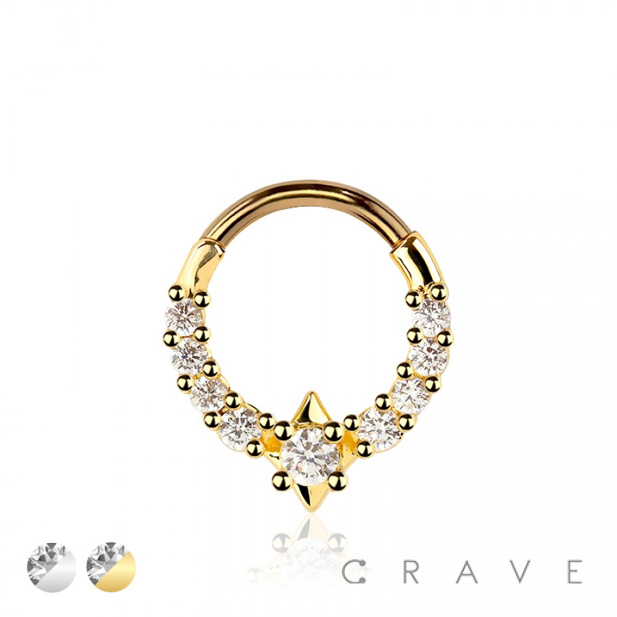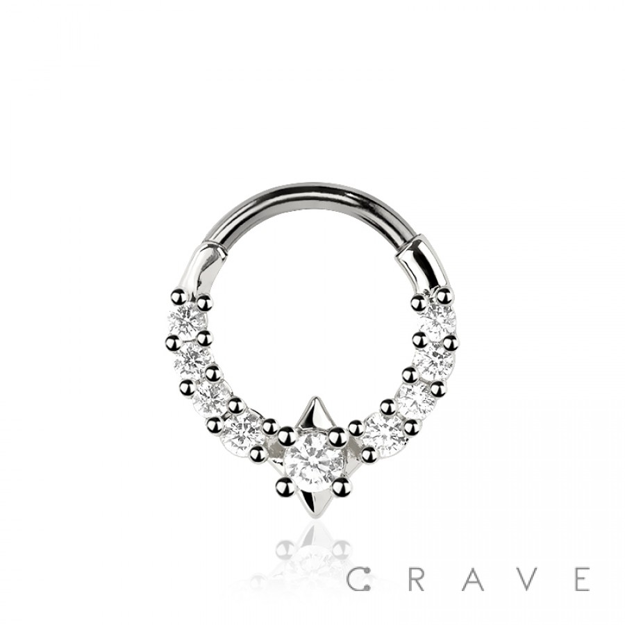 316L SURGICAL STEEL CZ KITE ROUND MULTI CZ SEPTUM HINGED SEGMENT HOOP RING