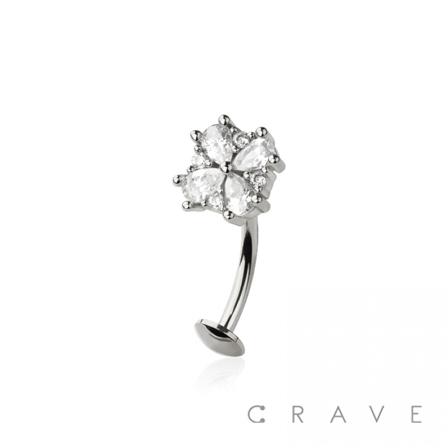 MULTI CZ FLOWER TOP 316L SURGICAL STEEL THREADLESS FLOATING BELLY BUTTON RING