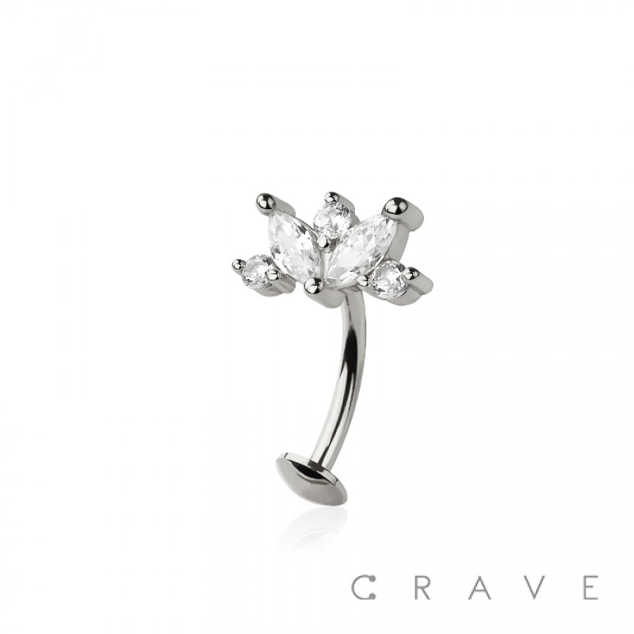 MULTI CZ MARQUISE FLOWER TOP 316L SURGICAL STEEL THREADLESS FLOATING BELLY BUTTON RING