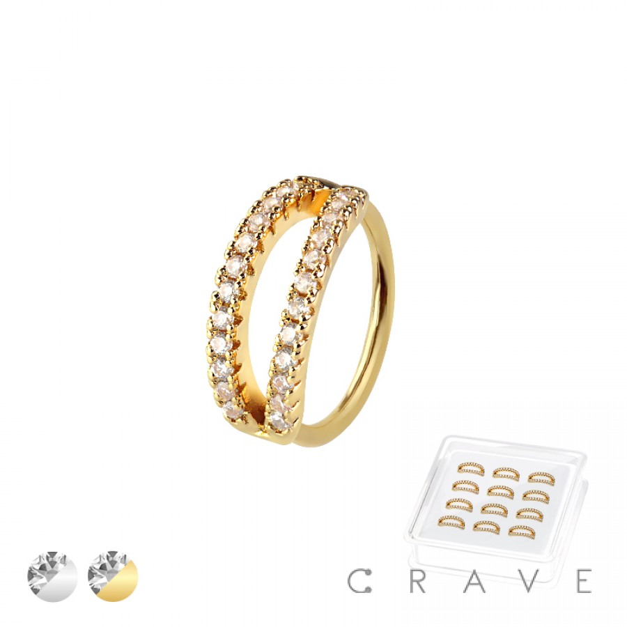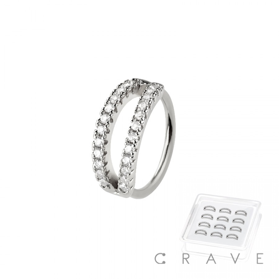 12PCS OF DOUBLE CZ LINE 316L SURGICAL STEEL HOOP NOSE RING BOX