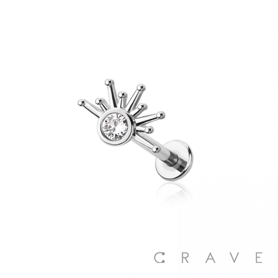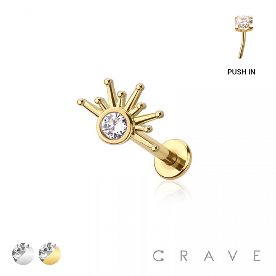 STARBURST HALF WITH CZ THREADLESS (PUSH IN) 316L SURGICAL STEEL LABRET SET