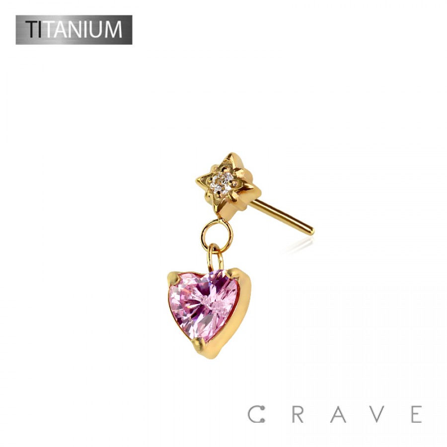 IMPLANT GRADE TITANIUM THREADLESS PUSH IN STARBURST CZ HEART DANGLE TOP PART