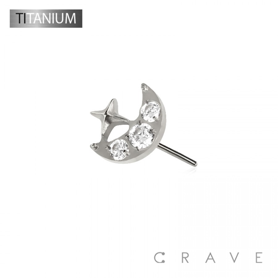 IMPLANT GRADE TITANIUM THREADLESS PUSH IN MULTI CZ STAR WITH MOON TOP PART