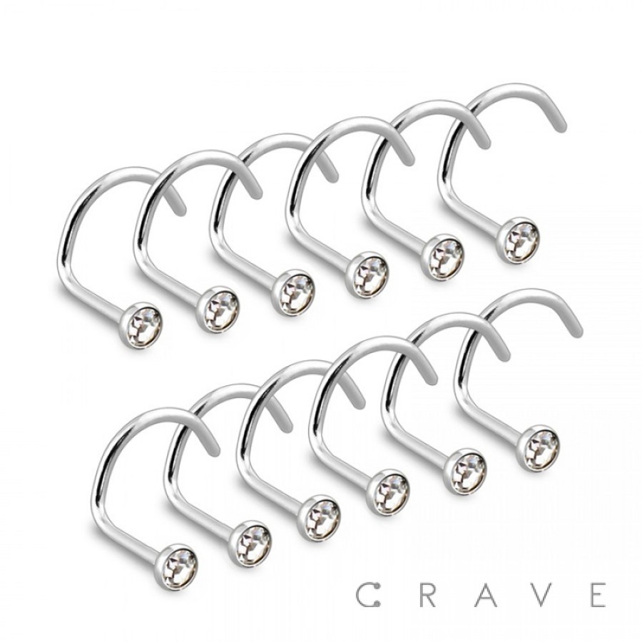 100PCS OF 316L SURGICAL STEEL NOSE SCREW FISH HOOK WITH PRESS FIT GEM
