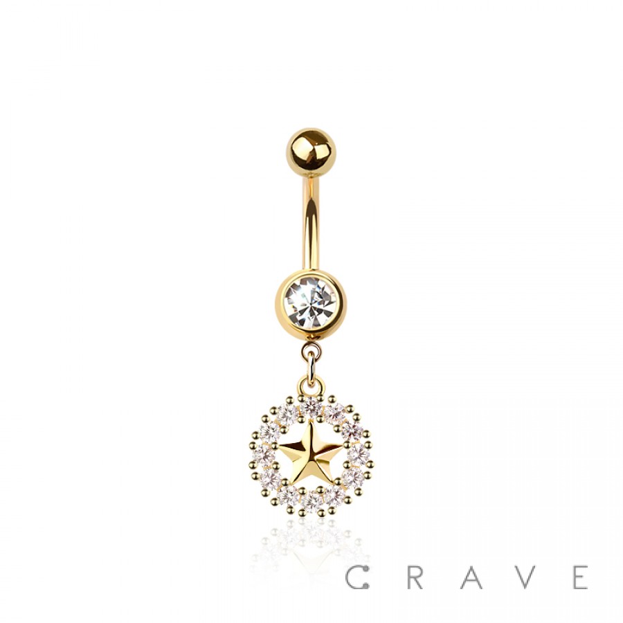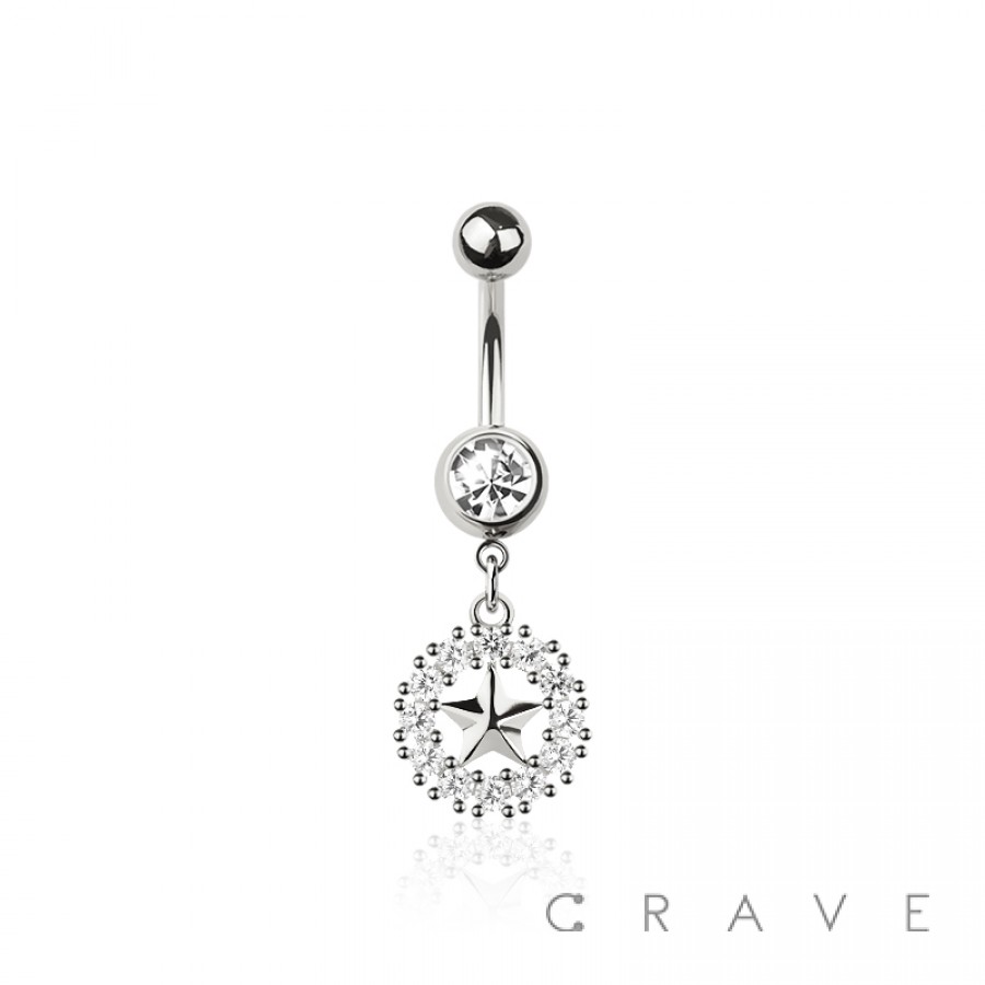316L SURGICAL STEEL MULTI CZ STAR DANGLE ROUND CZ BELLY BUTTON NAVEL RING
