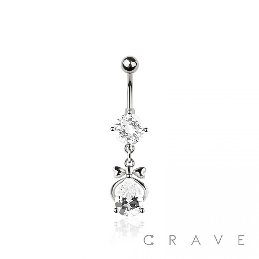 316L SURGICAL STEEL CZ RIBBON TEARDROP DANGLE ROUND CZ BELLY BUTTON NAVEL RING