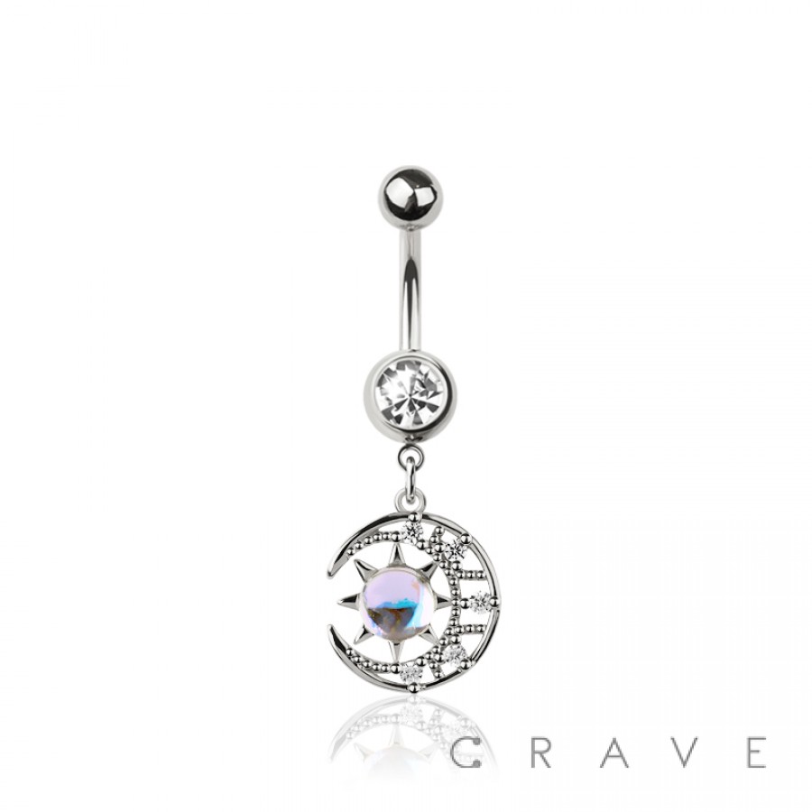 316L SURGICAL STEEL CIRCULAR SHAPED MOONSTONE MOON & SUN DANGLE BELLY BUTTON NAVEL RING