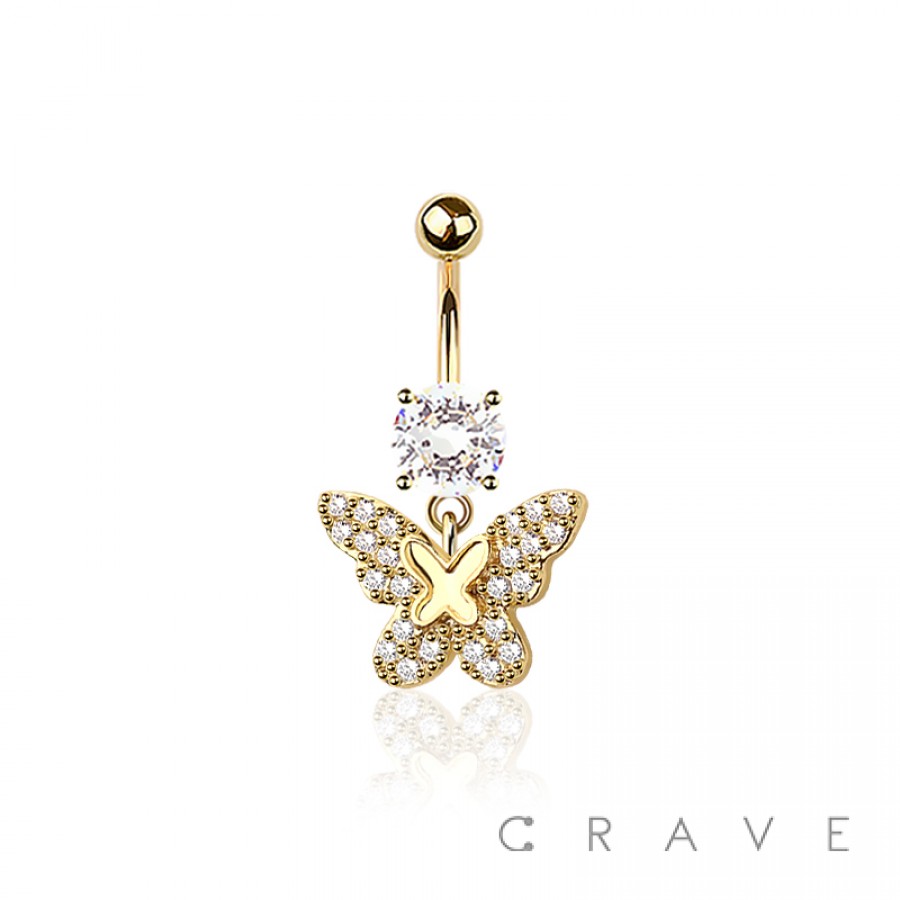 316L SURGICAL STEEL MULTI CZ DOUBLE BUTTERFLY BELLY BUTTON NAVEL RING