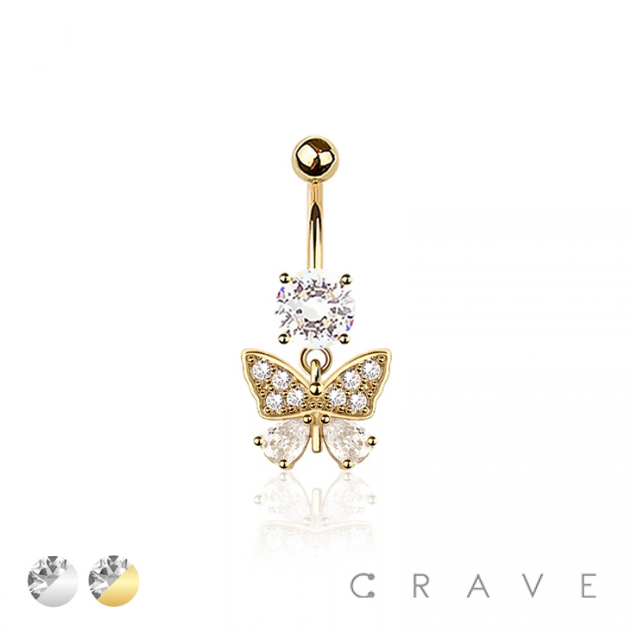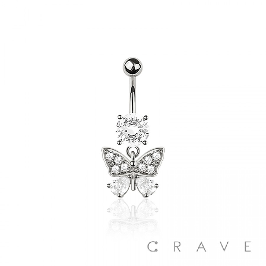 316L SURGICAL STEEL MULTI CZ BUTTERFLY BELLY BUTTON NAVEL RING