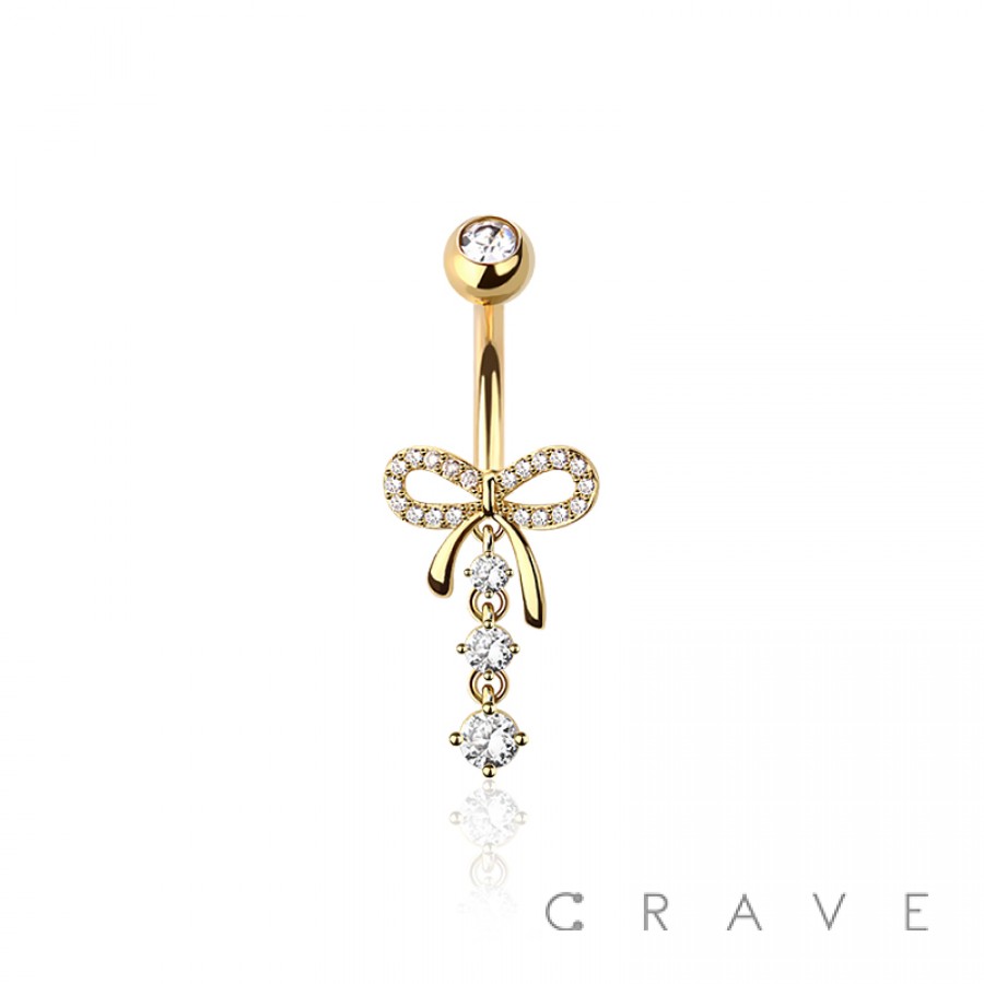 316L SURGICAL STEEL RIBBON WITH CZ DANGLE CASCADE BELLY BUTTON NAVEL RING