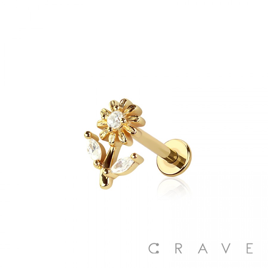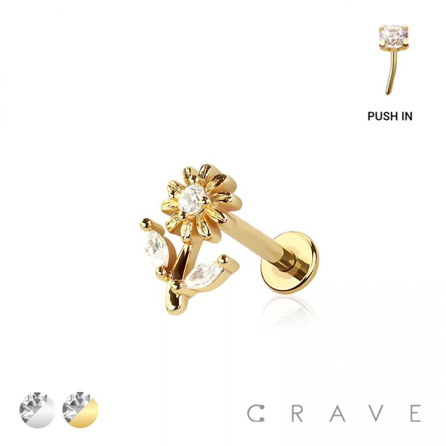 MULTI CZ SUNFLOWER FLOWER THREADLESS (PUSH IN) 316L SURGICAL STEEL LABRET SET