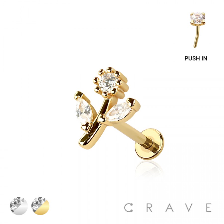 SUNNY FLOWER THREADLESS (PUSH IN) 316L SURGICAL STEEL LABRET SET
