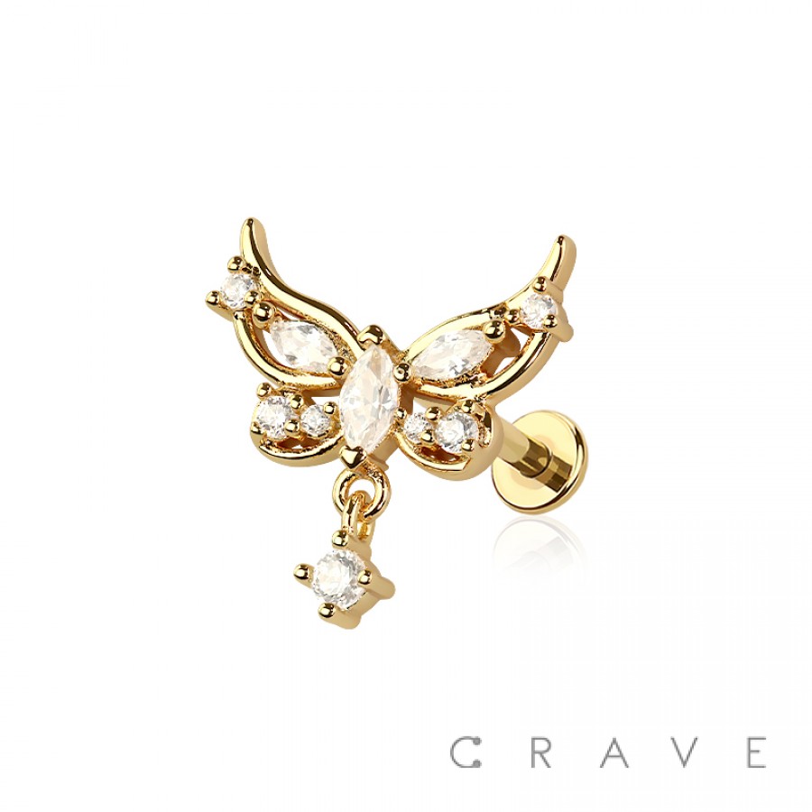 MULTI CZ BUTTERFLY DANGLE CZ THREADLESS (PUSH IN) 316L SURGICAL STEEL LABRET SET