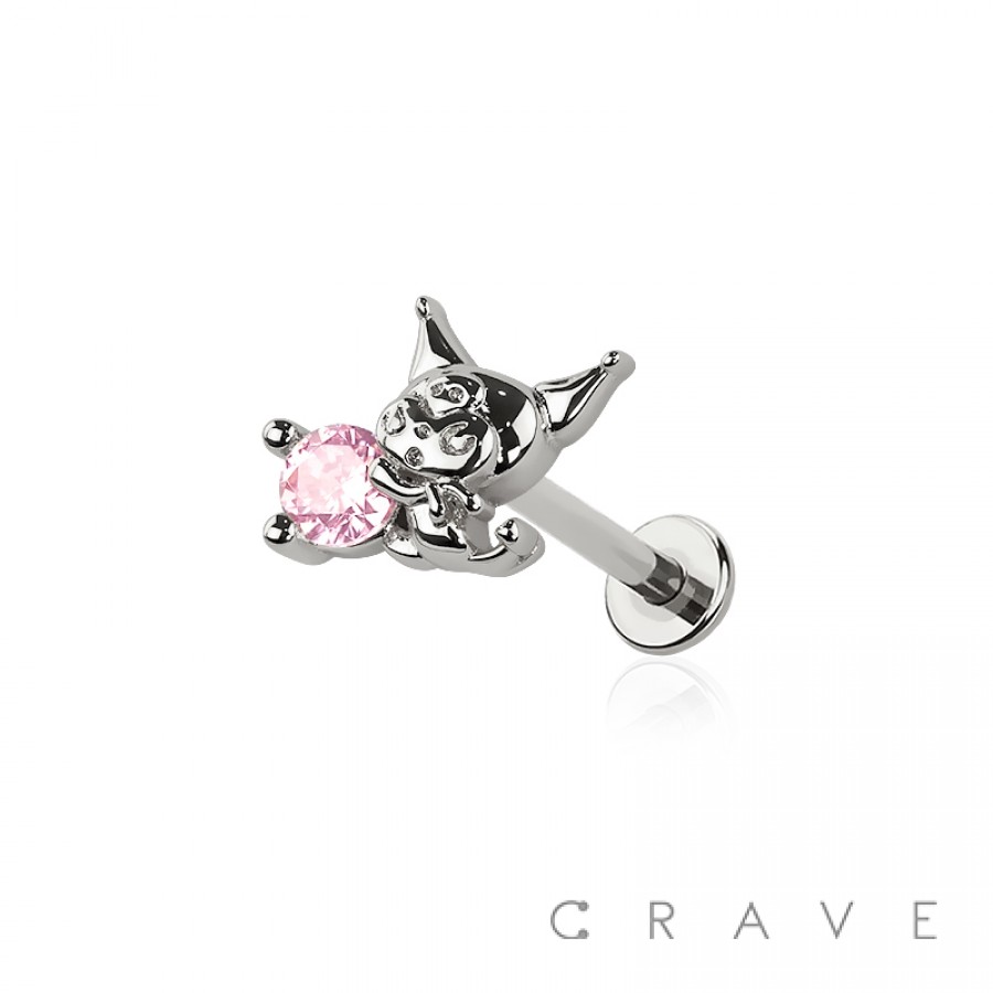 CZ STAR KUROMI KITTY CAT THREADLESS (PUSH IN) 316L SURGICAL STEEL LABRET SET