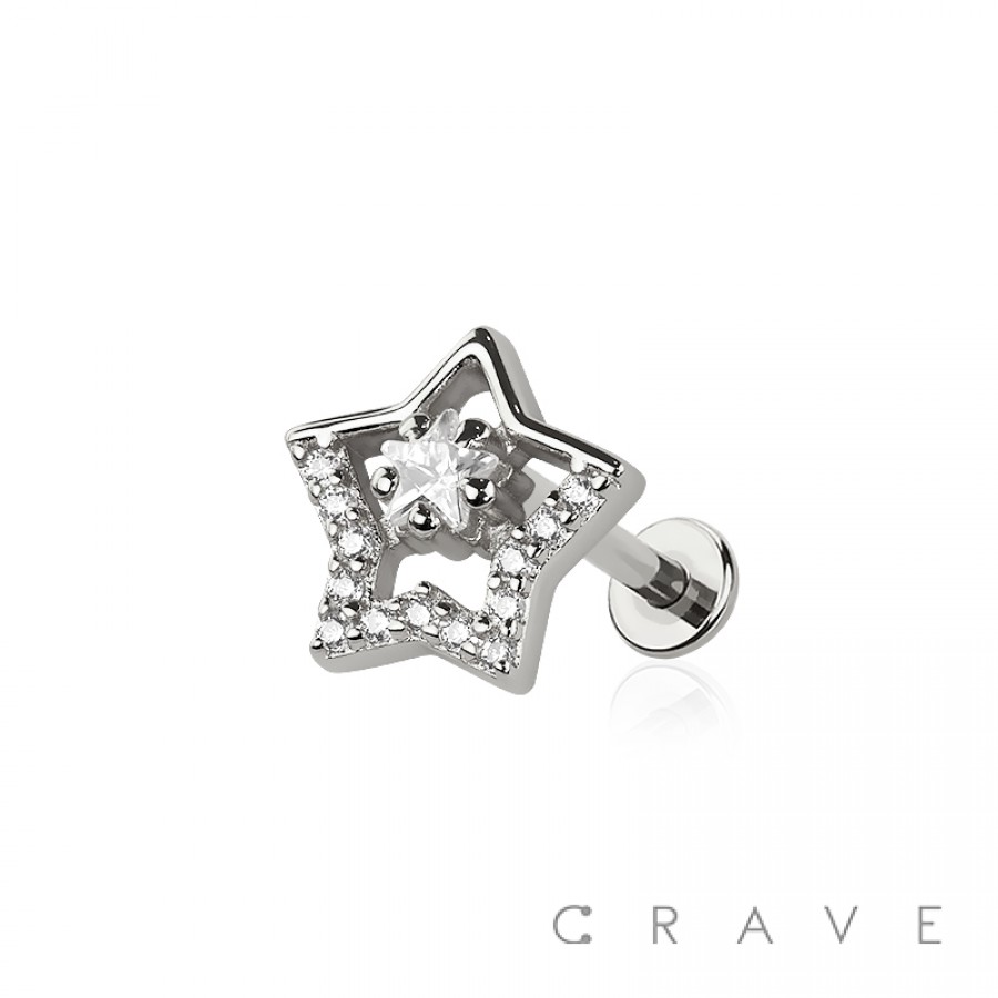 MULTI CZ STAR THREADLESS (PUSH IN) 316L SURGICAL STEEL LABRET SET