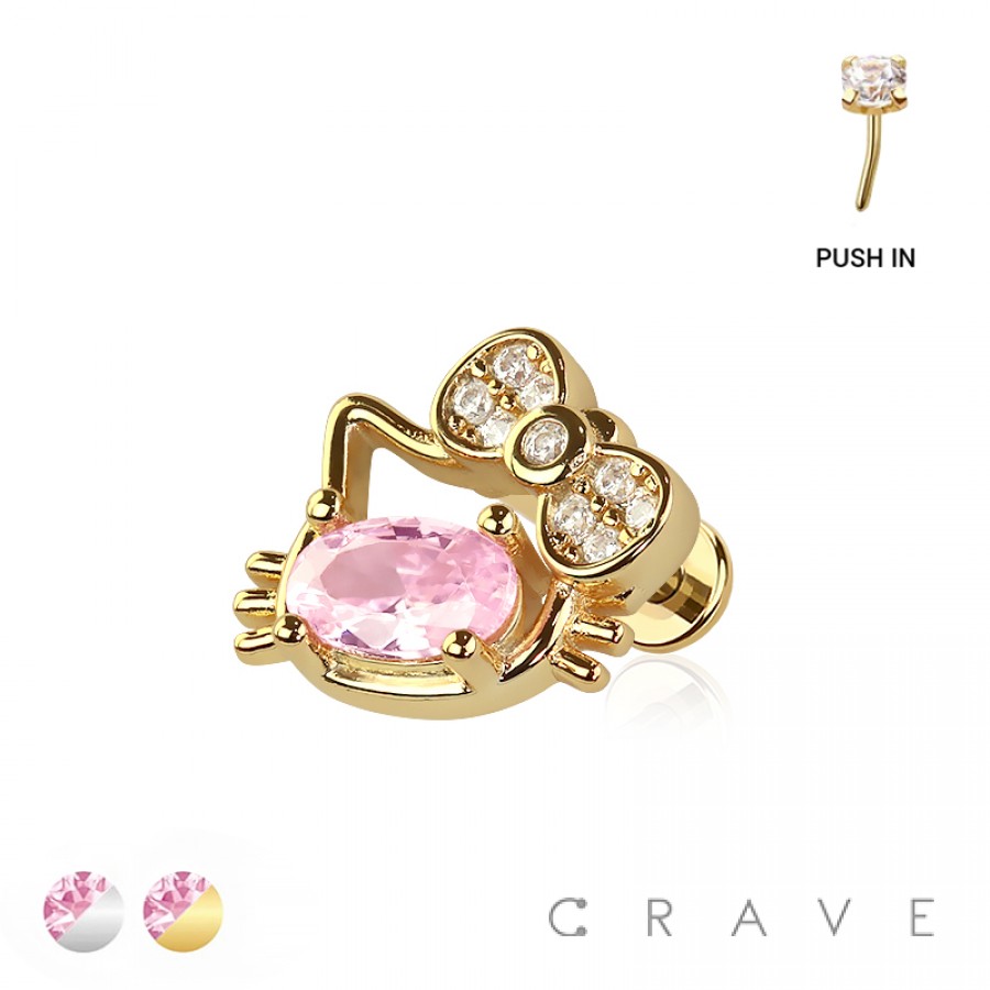 MULTI CZ RIBBON KITTY CAT THREADLESS (PUSH IN) 316L SURGICAL STEEL LABRET SET