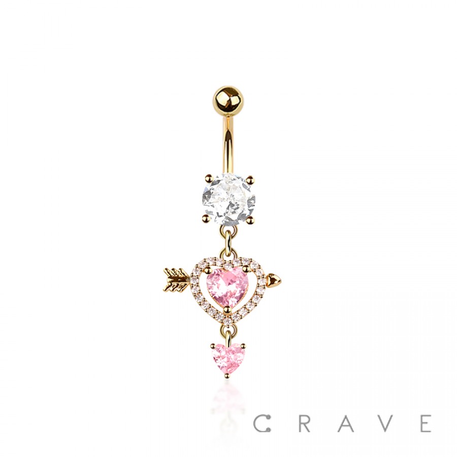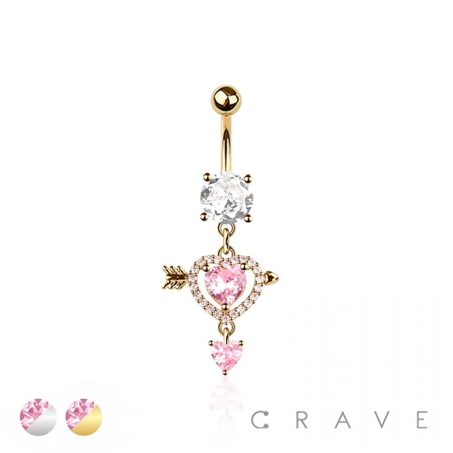 316L SURGICAL STEEL ARROW MULTI CZ HEART DANGLE BELLY BUTTON NAVEL RING