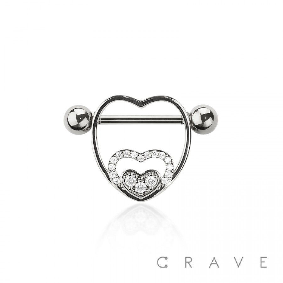 MULTI CZ HEART IN HEART 316L SURGICAL STEEL NIPPLE RING