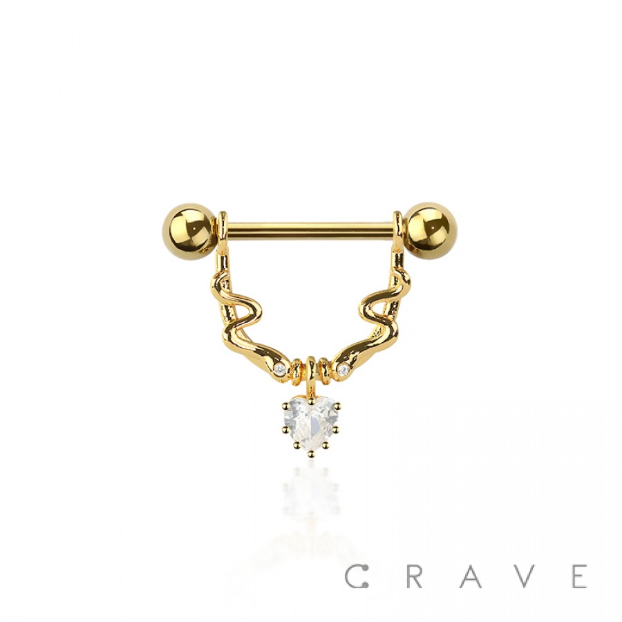 SNAKE CZ DANGLE HEART 316L SURGICAL STEEL NIPPLE RING