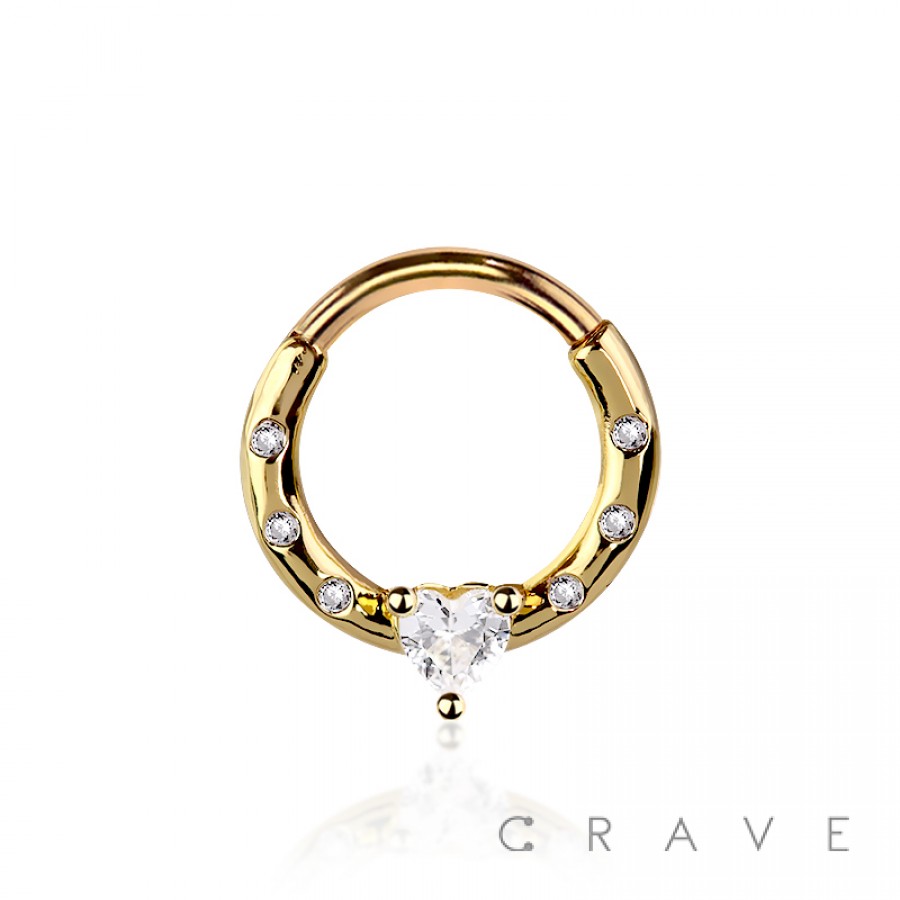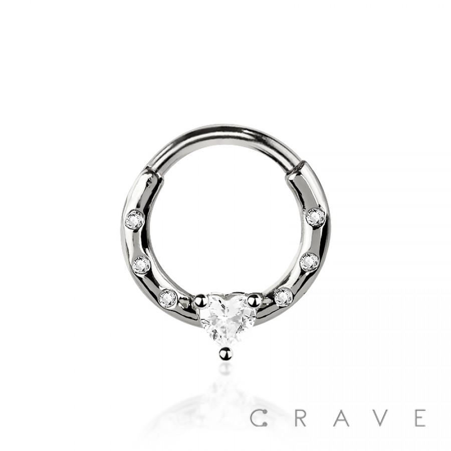 316L SURGICAL STEEL MULTI CZ HOOP SINGLE HEART CZ SEPTUM HINGED SEGMENT HOOP RING
