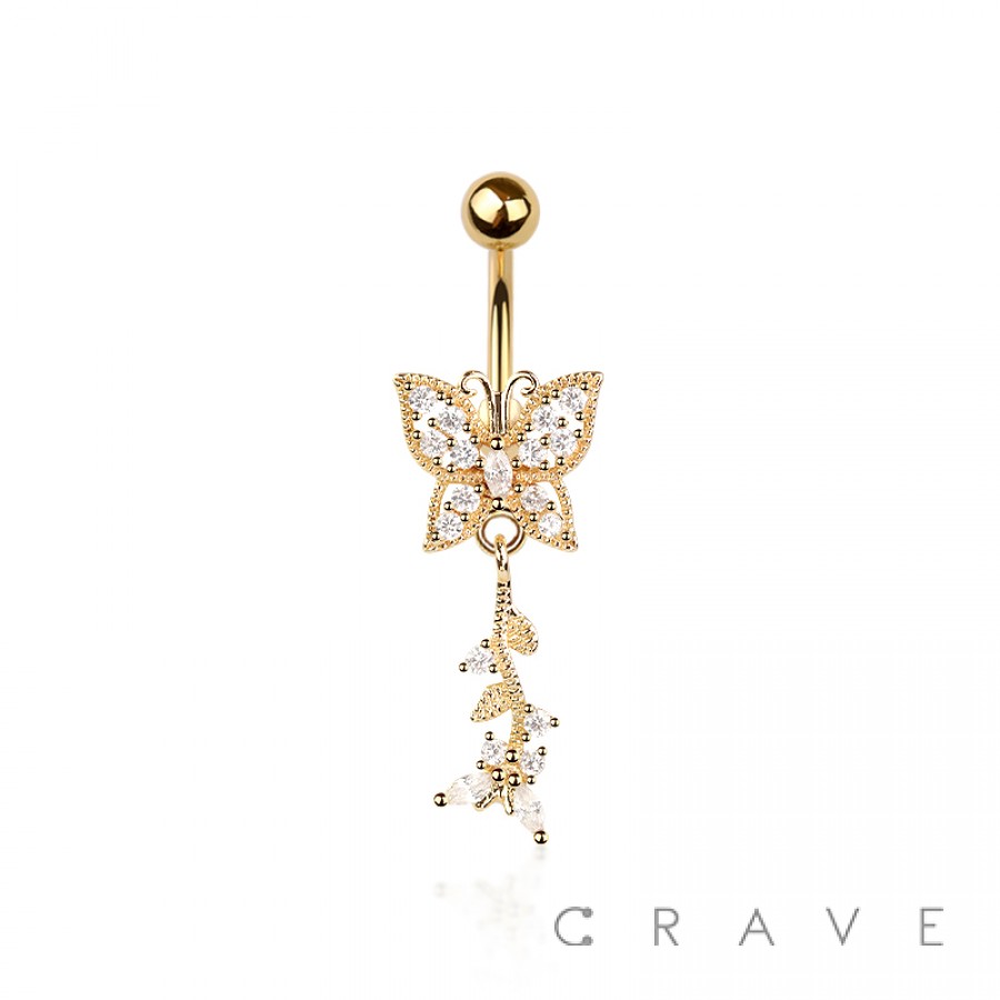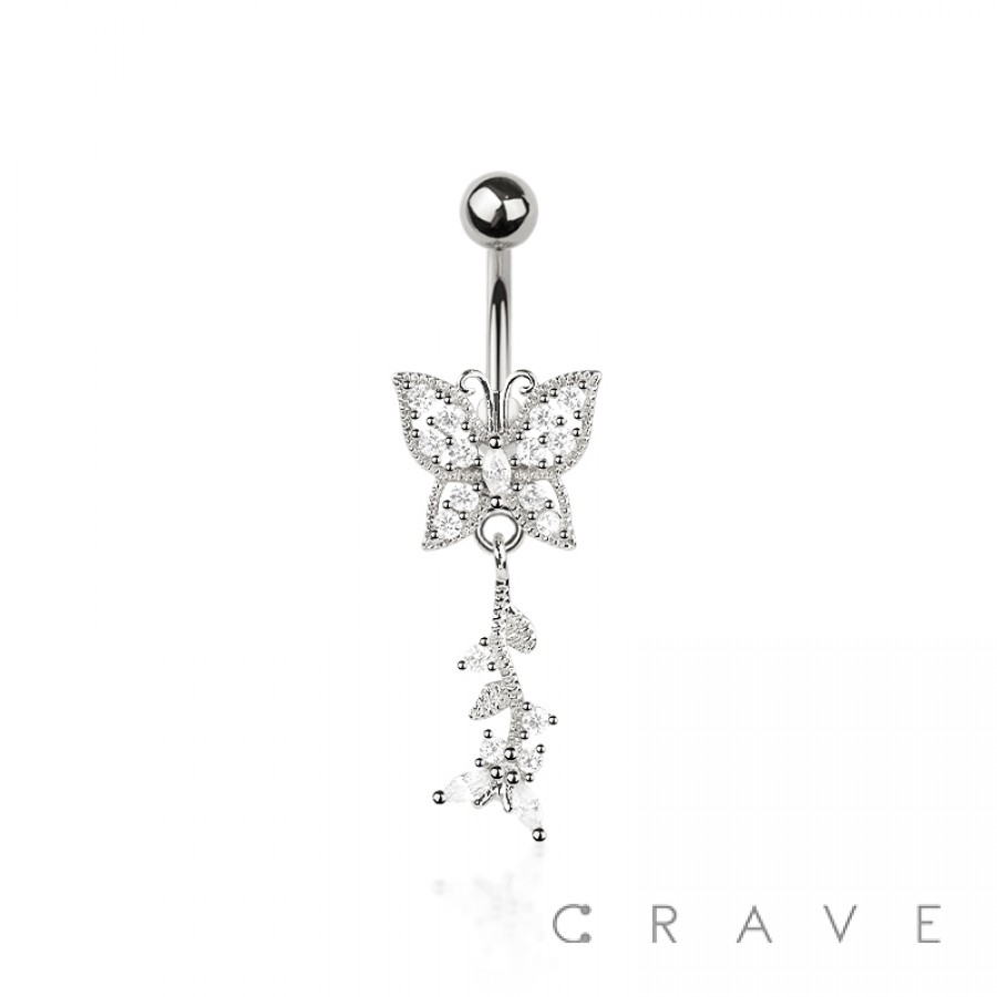 316L SURGICAL STEEL MULTI CZ BUTTERFLY DANGLE BELLY BUTTON NAVEL RING