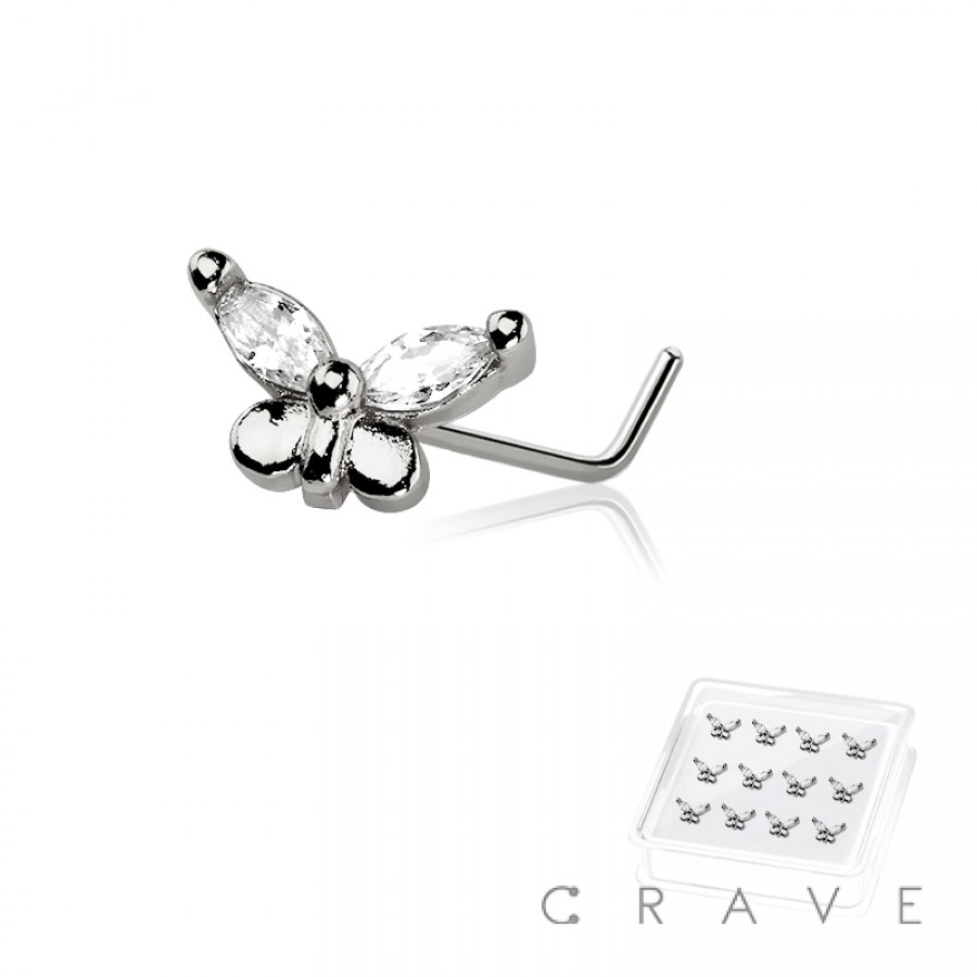 12PCS OF CZ PRONG BUTTERFLY 316L SURGICAL STEEL L SHAPE NOSE BOX