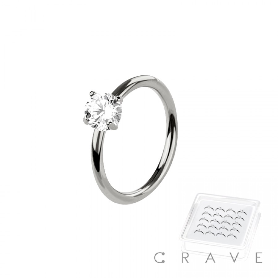 CZ PRONG SET 316L SURGICAL STEEL O-RING NOSE HOOP BOX
