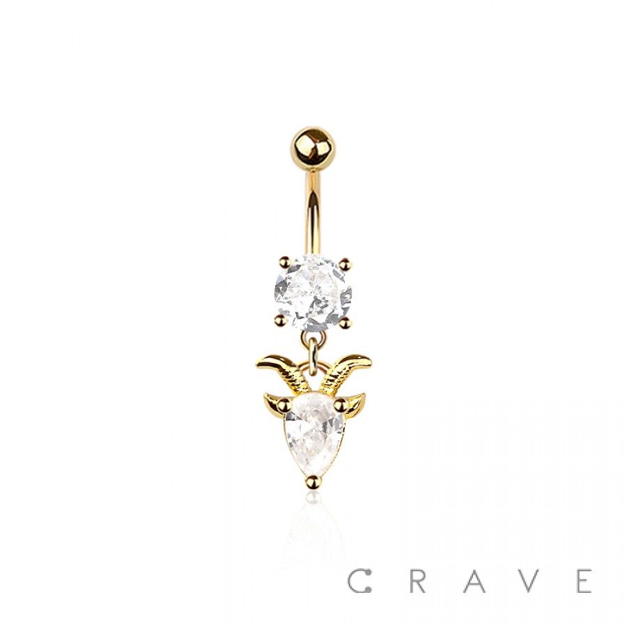 316L SURGICAL STEEL CZ GOAT DANGLE BELLY BUTTON NAVEL RING