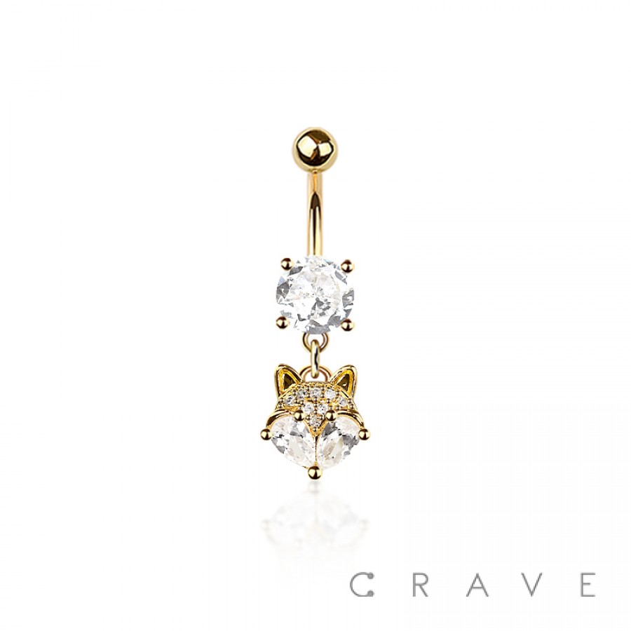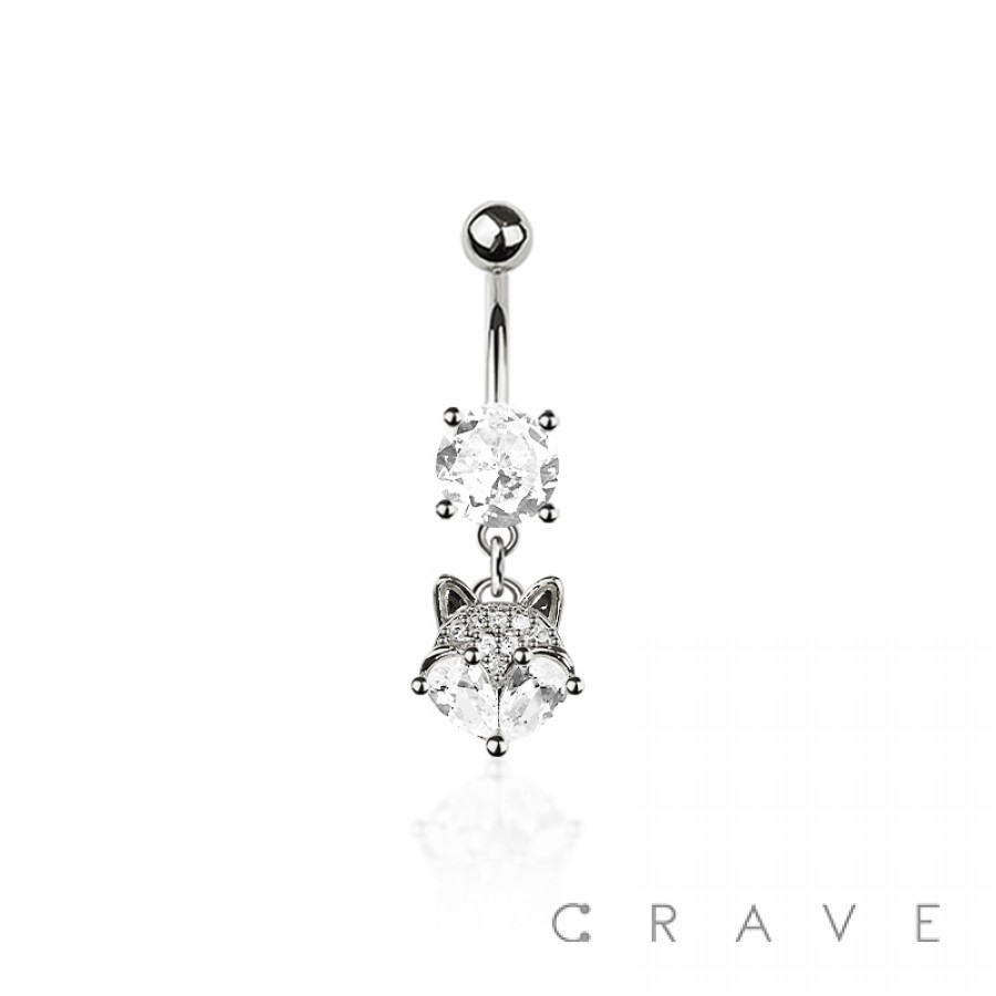 316L SURGICAL STEEL CZ FOX DANGLE BELLY BUTTON NAVEL RING