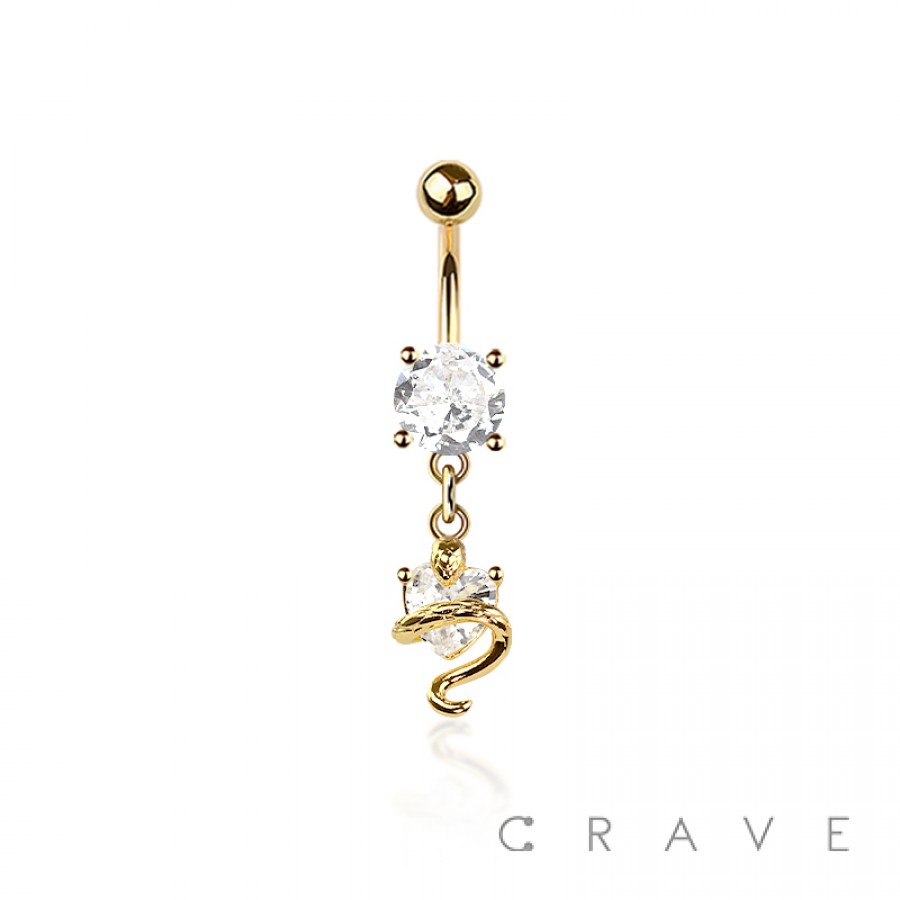 316L SURGICAL STEEL CZ SNAKE COBRA DANGLE BELLY BUTTON NAVEL RING