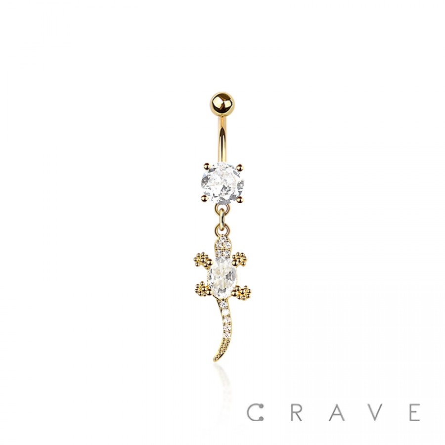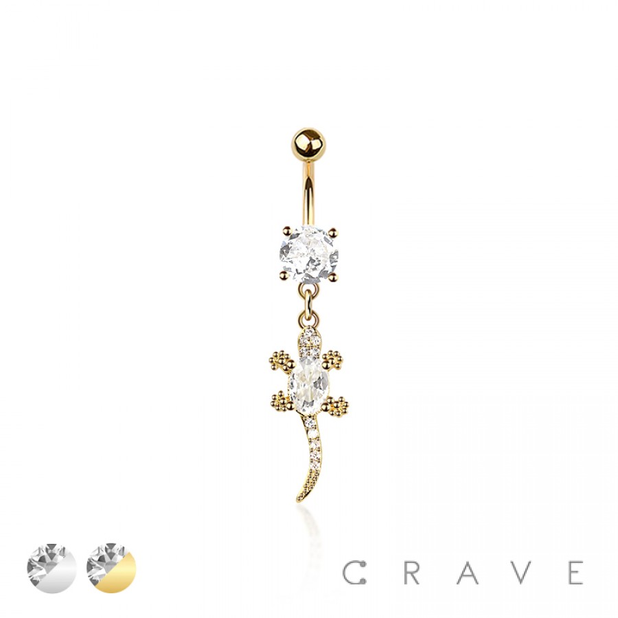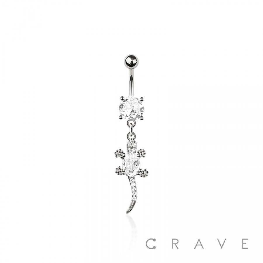 316L SURGICAL STEEL MULTI CZ LUXURIOUS LIZARD DANGLE BELLY BUTTON NAVEL RING