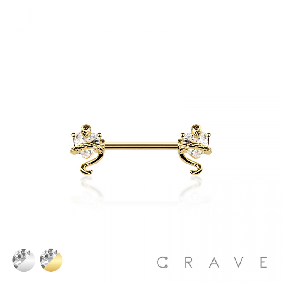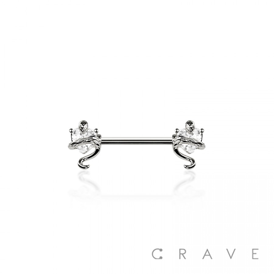 CZ HEART SNAKE COBRA 316L SURGICAL STEEL NIPPLE RING