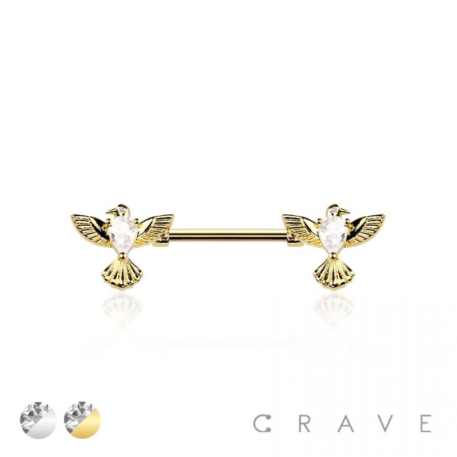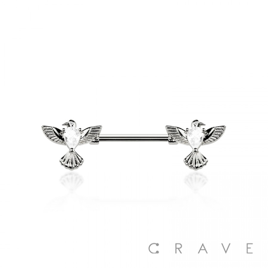 CZ BIRD WING CHARM TEARDROP CZ 316L SURGICAL STEEL NIPPLE RING