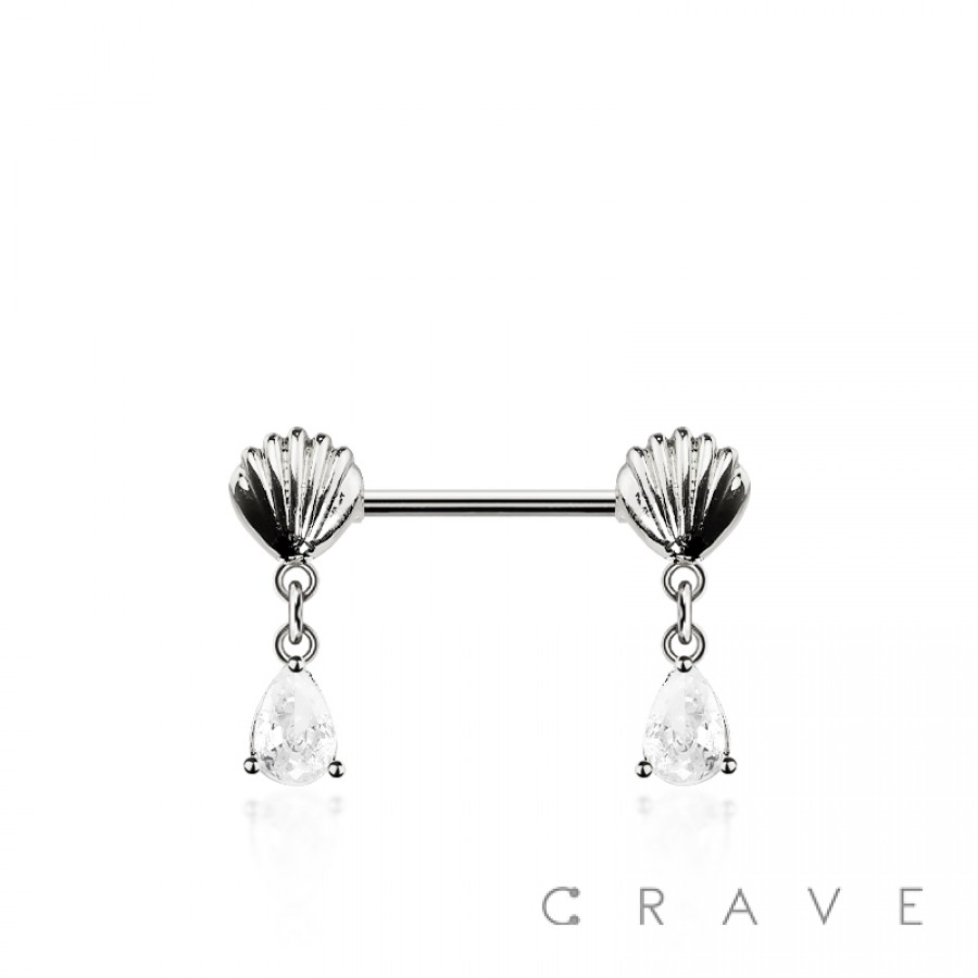 TEARDROP CZ DANGLE SEASHELL 316L SURGICAL STEEL NIPPLE RING