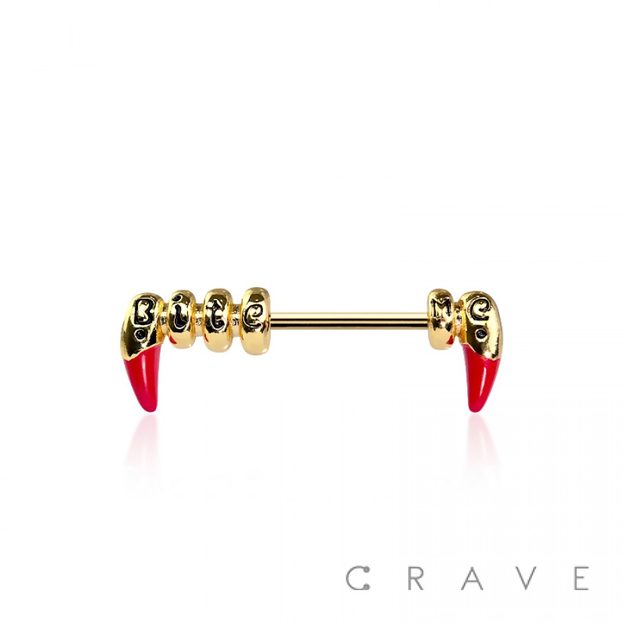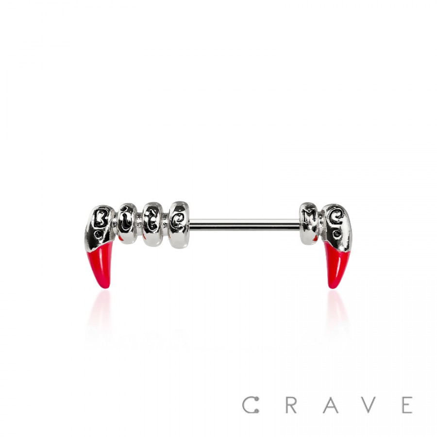 RED FANGS LOVE BITE ME 316L SURGICAL STEEL NIPPLE RING