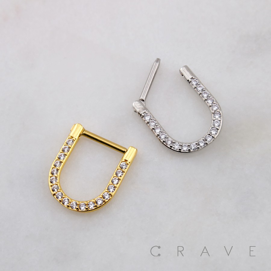 MULTI CZ U-SHAPED SEPTUM HINGED SEGMENT HOOP RING 316L SURGICAL STEEL
