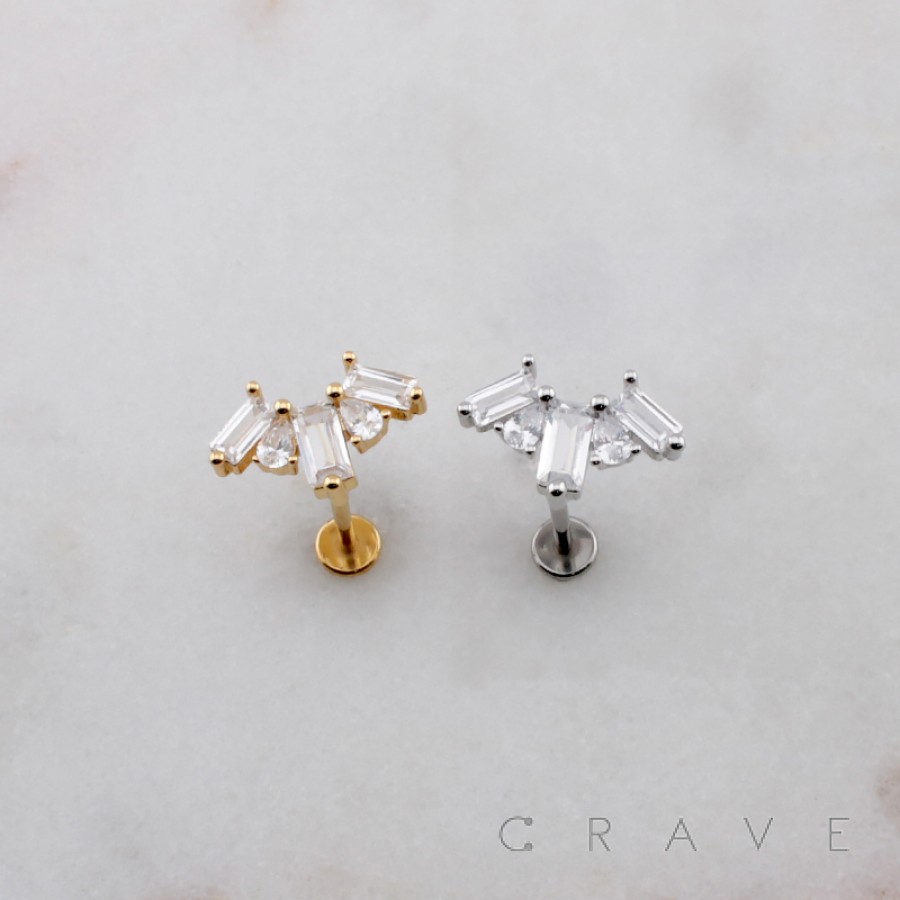 TEARDROP CZ BAGUETTE MIX ARCH FAN THREADLESS (PUSH IN) 316L SURGICAL STEEL LABRET SET