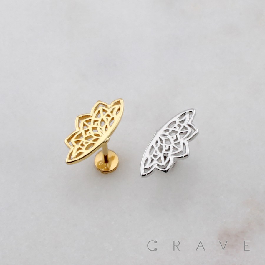 HOLLOW-OUT LOTUS FLOWER MANDALA THREADLESS (PUSH IN) 316L SURGICAL STEEL LABRET SET