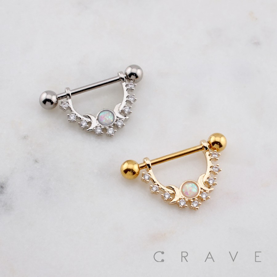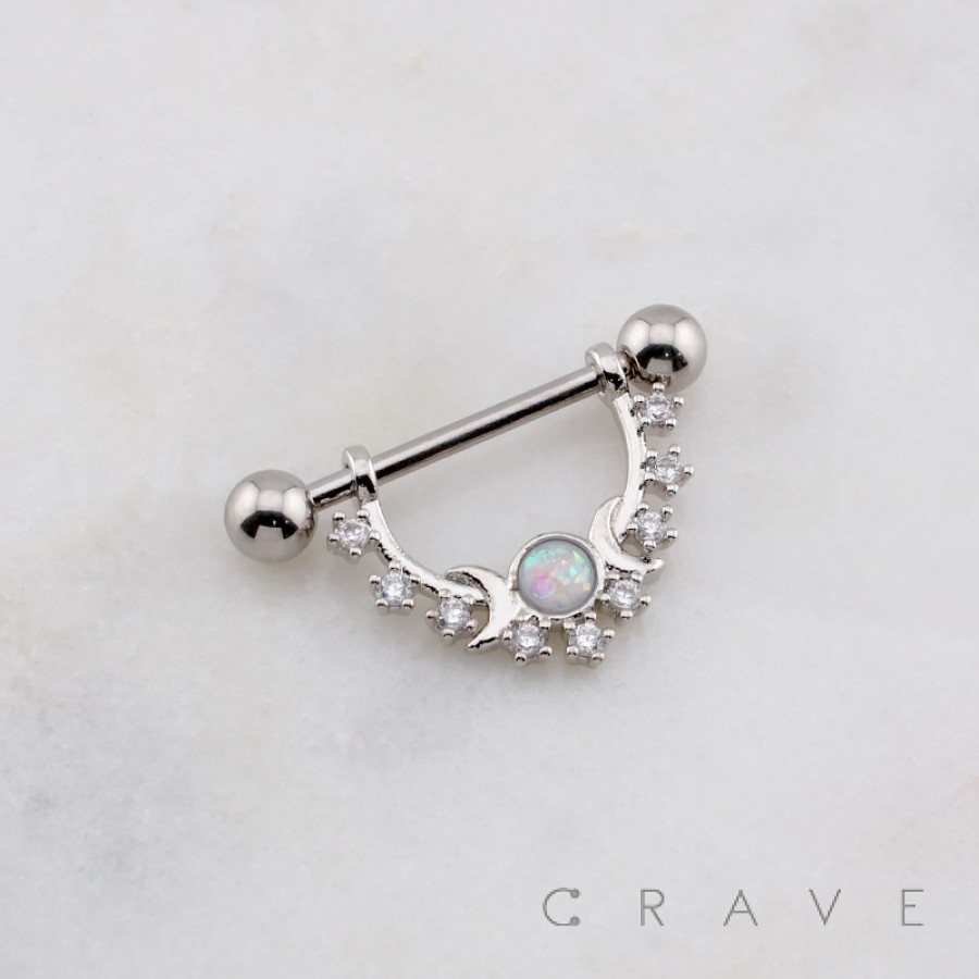 MOON OPAL BEZEL CZ 316L SURGICAL STEEL NIPPLE RING SHIELD