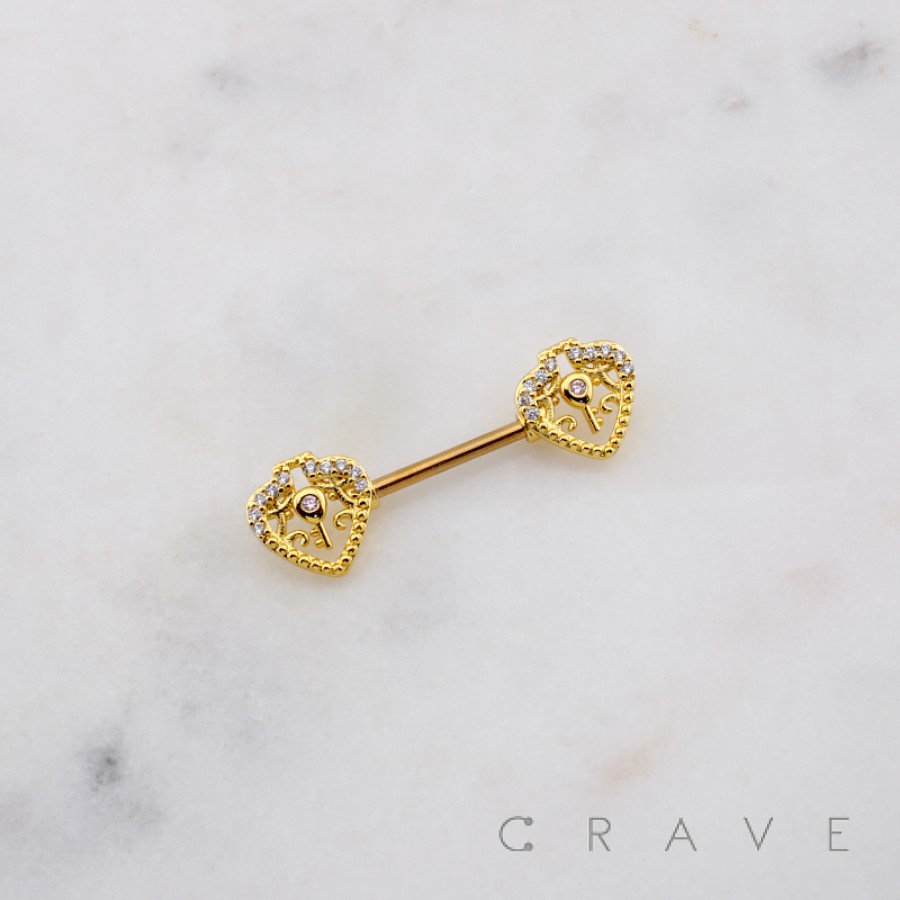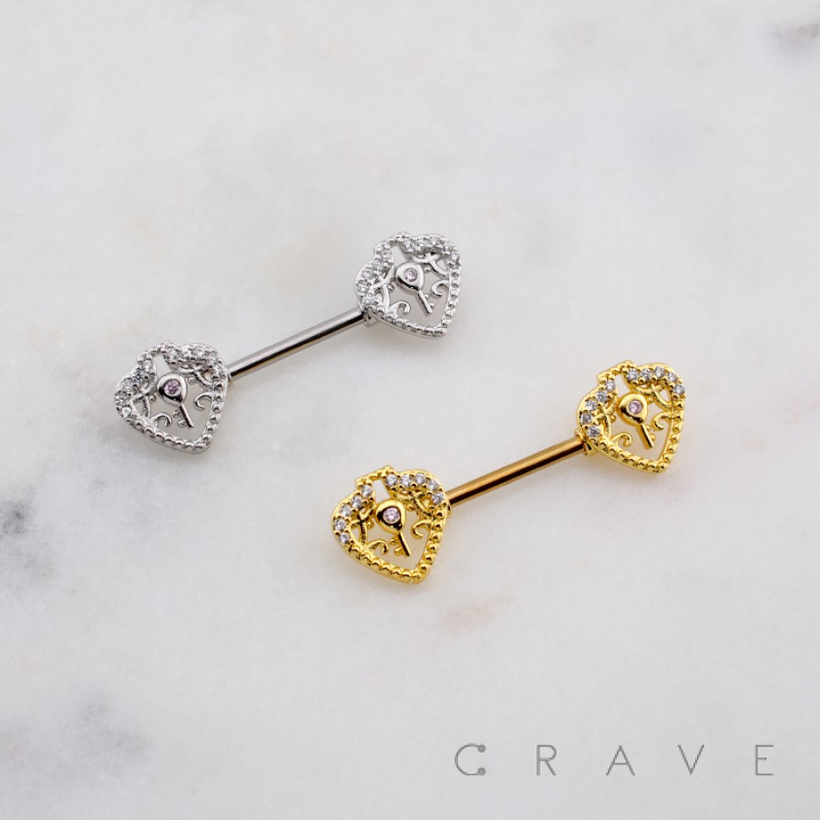 MULTI CZ HEART WITH KEY316L SURGICAL STEEL NIPPLE RING