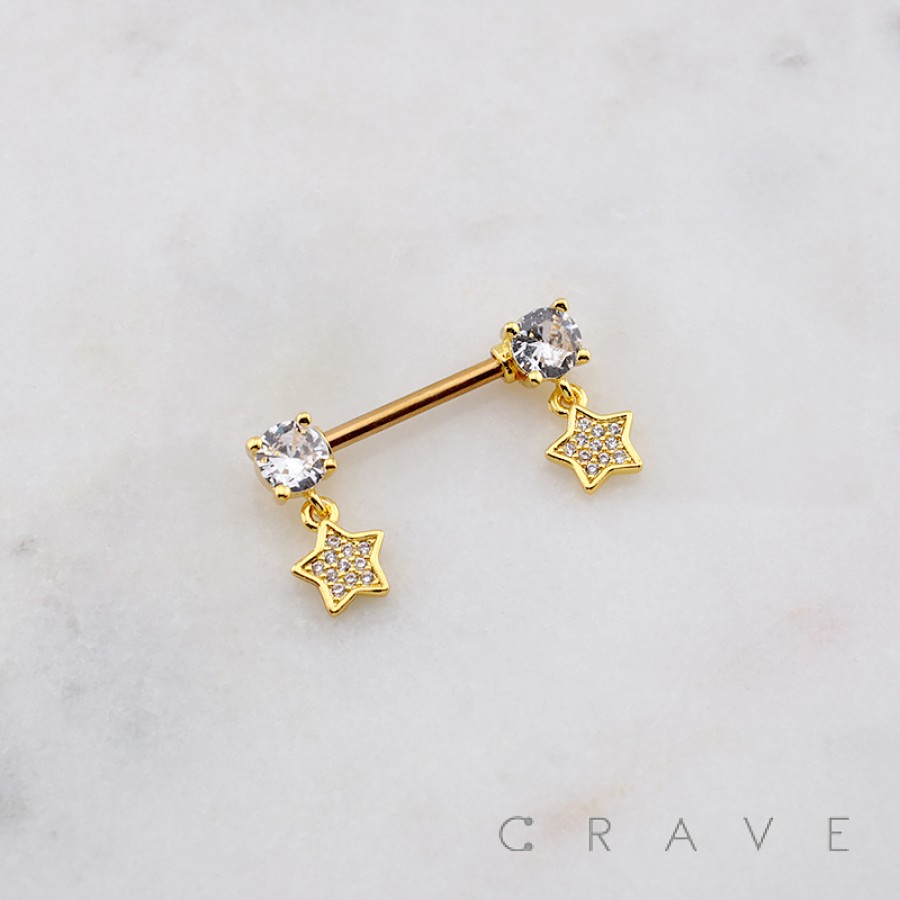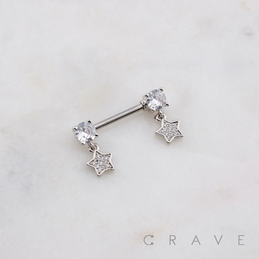 DANGLE MULTI CZ STAR 316L SURGICAL STEEL NIPPLE RING