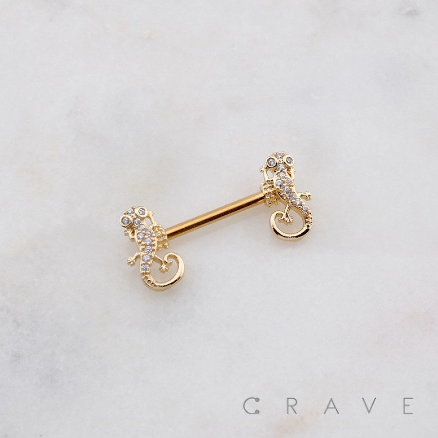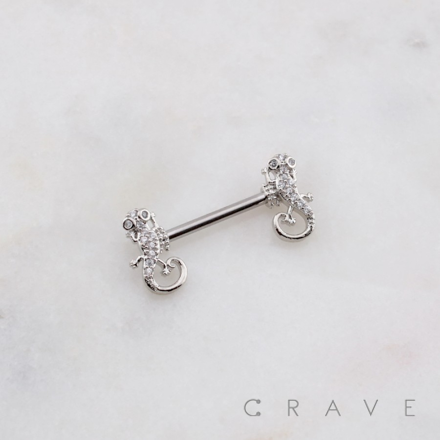 MULTI CZ LIZARD GECKO 316L SURGICAL STEEL NIPPLE RING