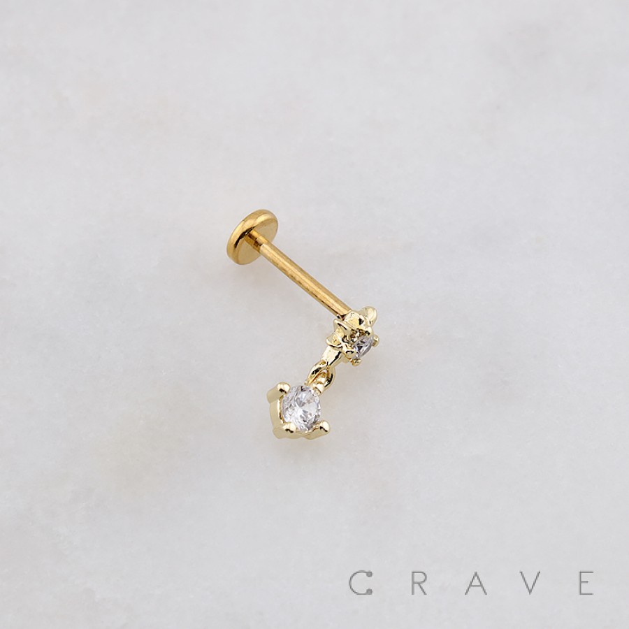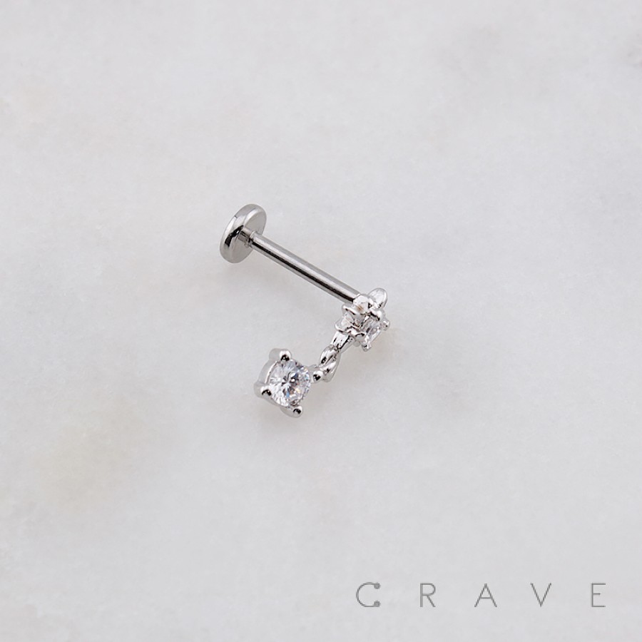 CZ STAR DROP ROUND DANGLE CZ THREADLESS (PUSH IN) 316L SURGICAL STEEL LABRET SET