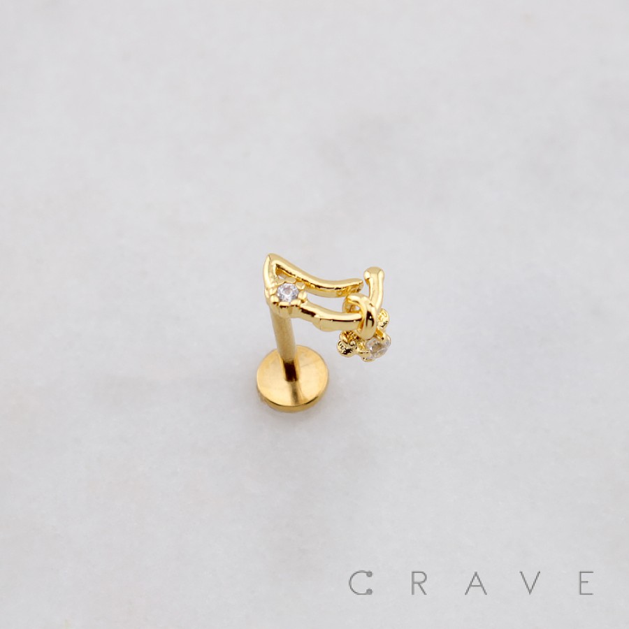 CZ MOON STARBURST DANGLE CZ THREADLESS (PUSH IN) 316L SURGICAL STEEL LABRET SET