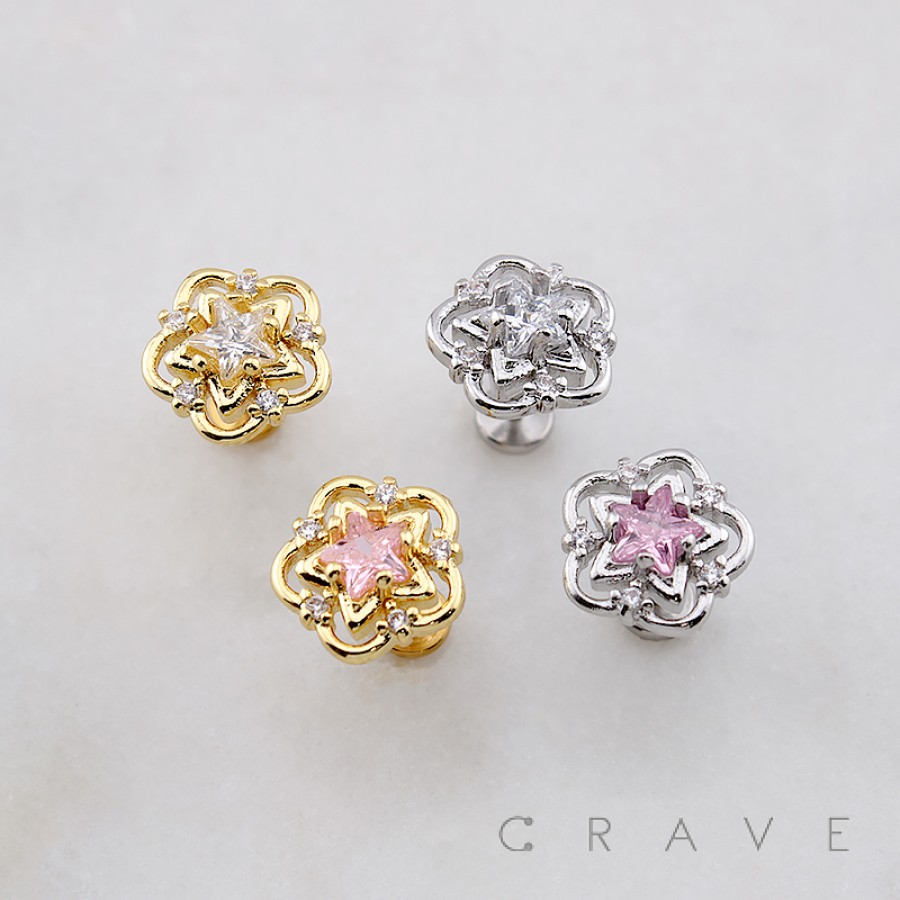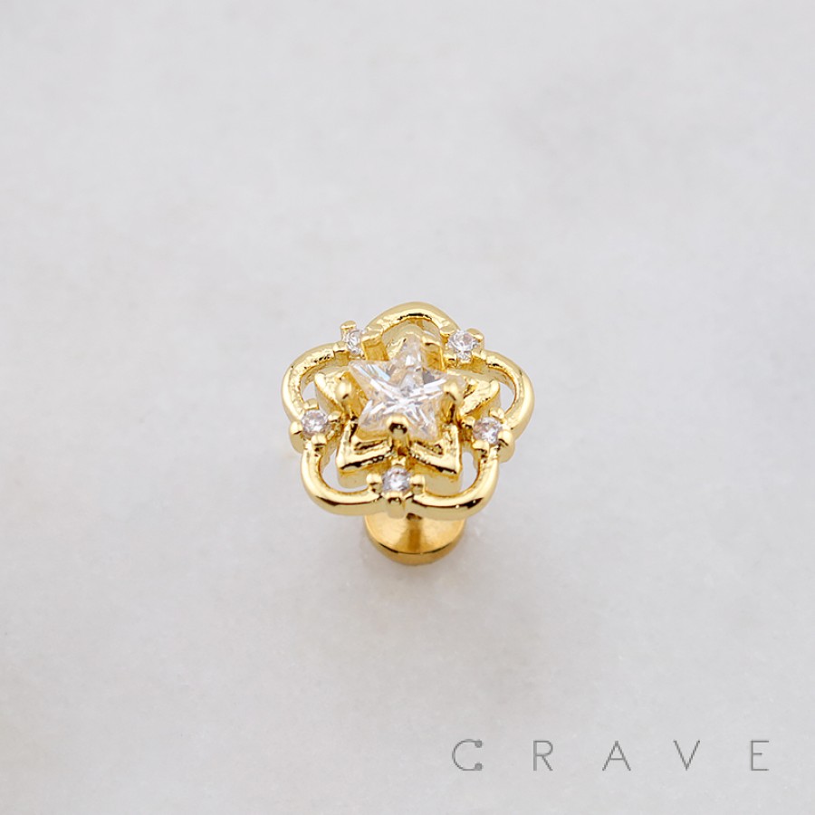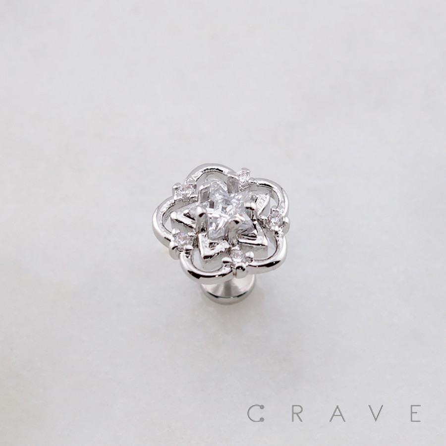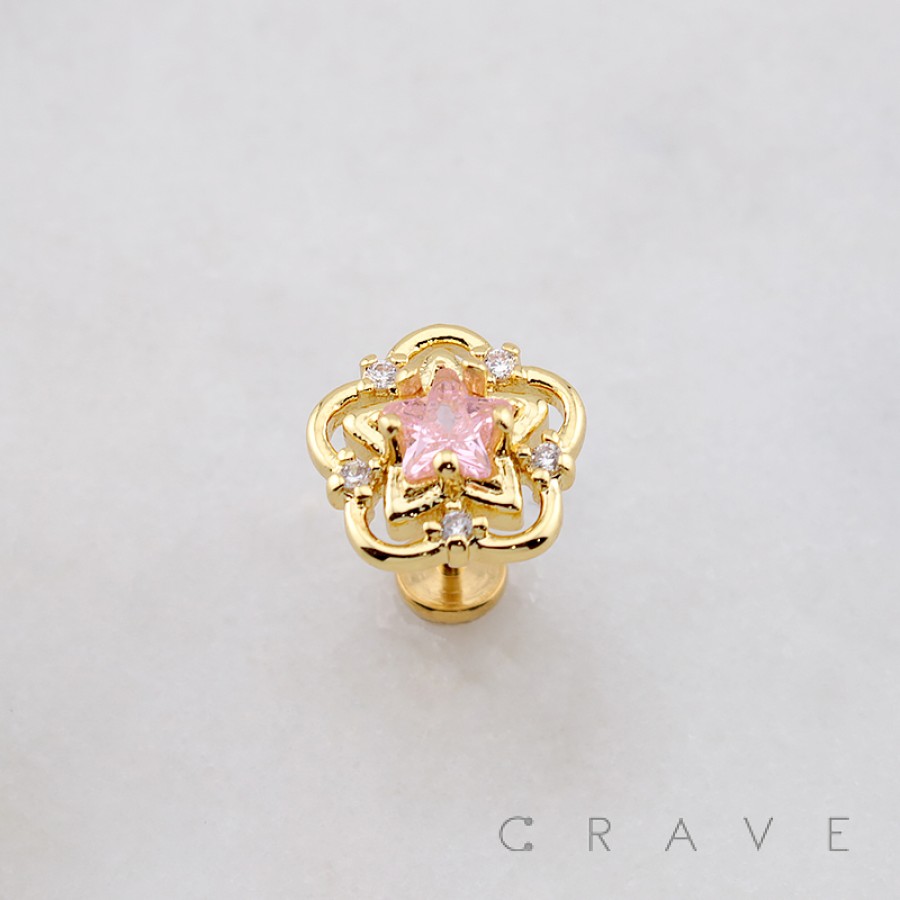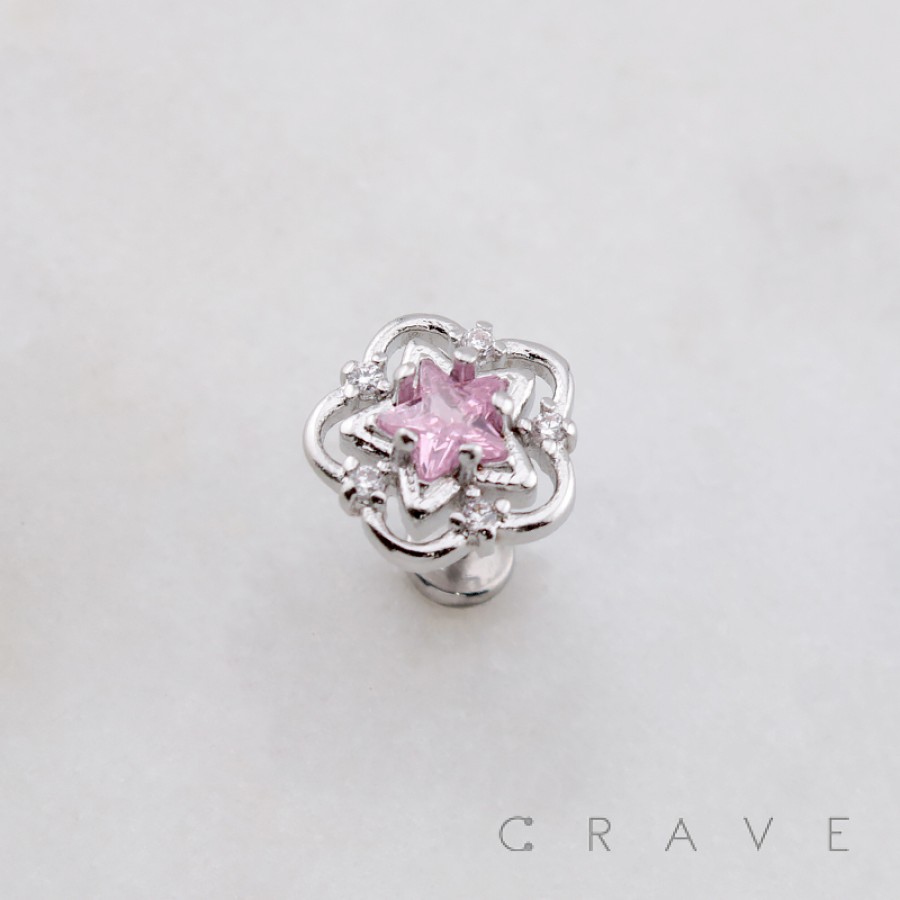 MULTI CZ FLOWER GLOW STAR THREADLESS (PUSH IN) 316L SURGICAL STEEL LABRET SET