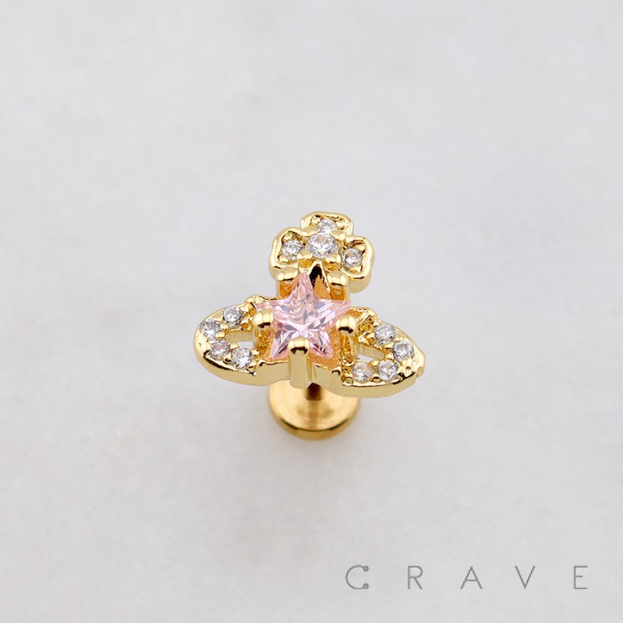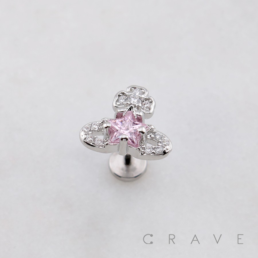CZ CLOVER STAR GLAMOUR THREADLESS (PUSH IN) 316L SURGICAL STEEL LABRET SET