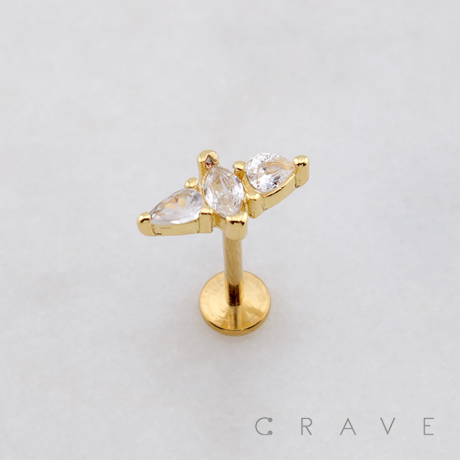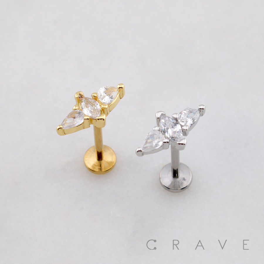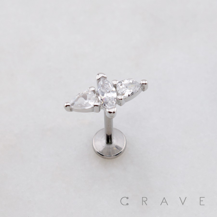 MARQUISE PEAR CZ TIARA THREADLESS (PUSH IN) 316L SURGICAL STEEL LABRET SET