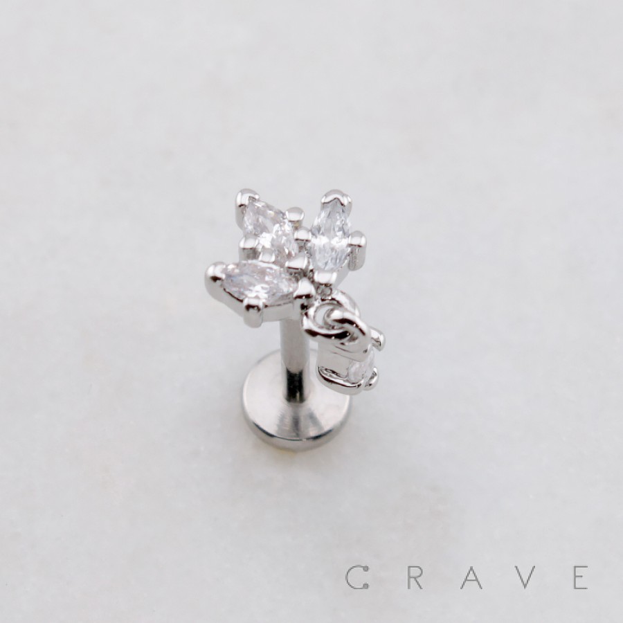TRIPLE MARQUISE DANGLE CZ THREADLESS (PUSH IN) 316L SURGICAL STEEL LABRET SET