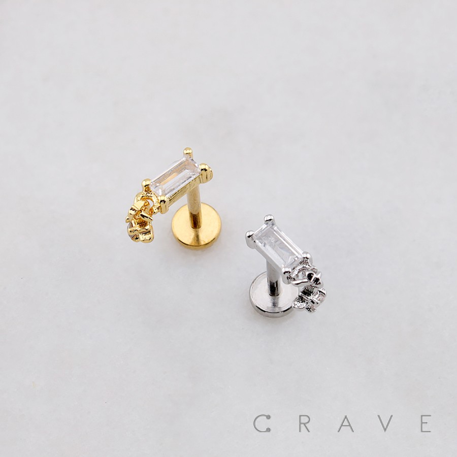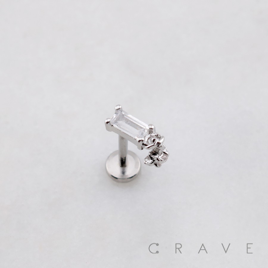 BAGUETTE CZ DANGLE STARBURST CZ THREADLESS (PUSH IN) 316L SURGICAL STEEL LABRET SET