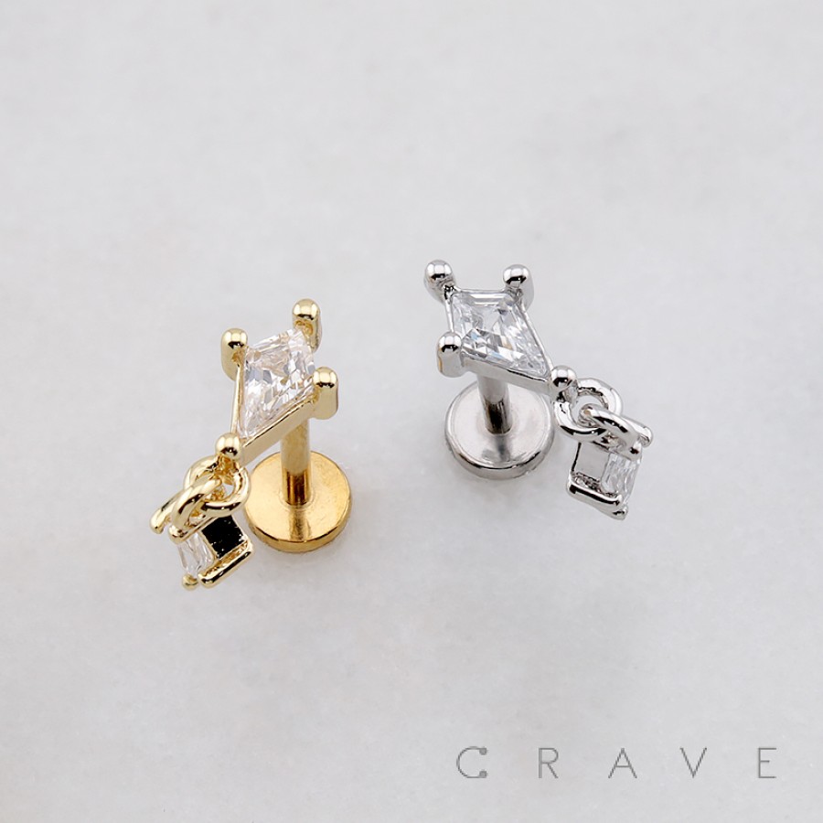KITE DANGLE KITE TOP CZ THREADLESS (PUSH IN) 316L SURGICAL STEEL LABRET SET